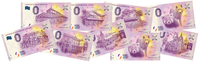 The new collection area thrilled thousands of collectors. The 0-Euro bills are originally from France and include as motifs mainly attractions. Originally only available in France, since 2016 they are also available in other countries.